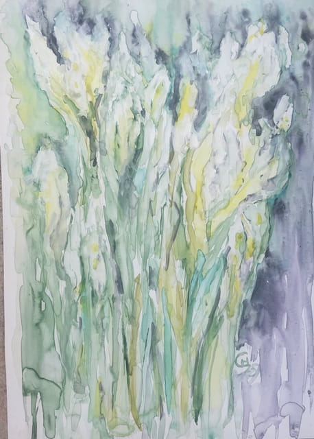 Akwarela zafascynowała ją swoją nieprzewidywalnością – to medium, w którym pigment podąża za wodą, rozpuszcza się, łączy, tworząc wyjątkowe, nieregularne wzory.