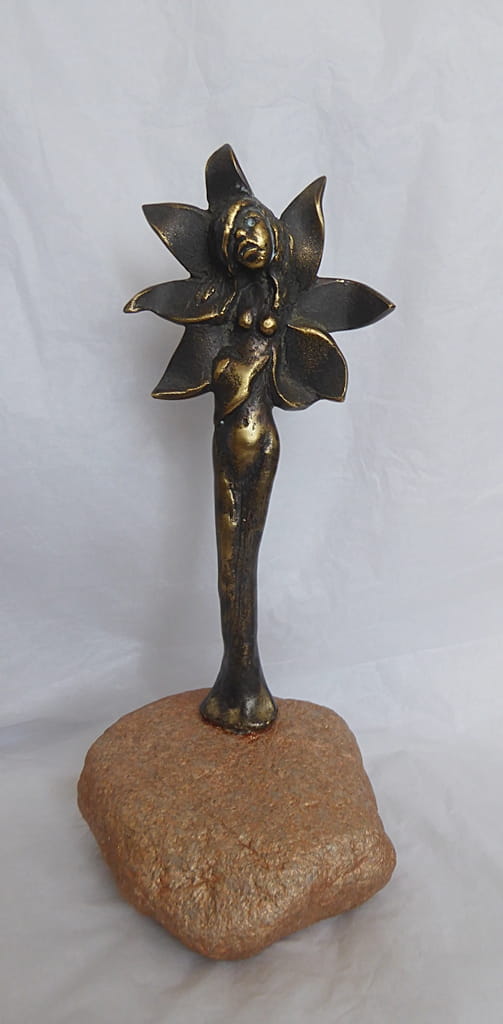 Brąz na kamiennej podstawie (granitowy kamień polny)