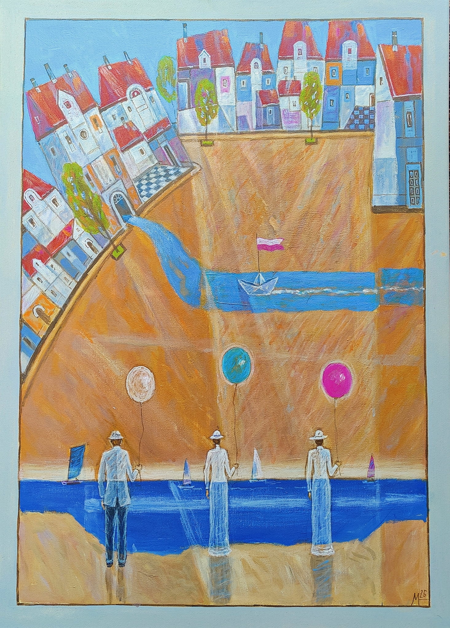 Płotno, akryl, o wymiarach 70 x 50 cm,