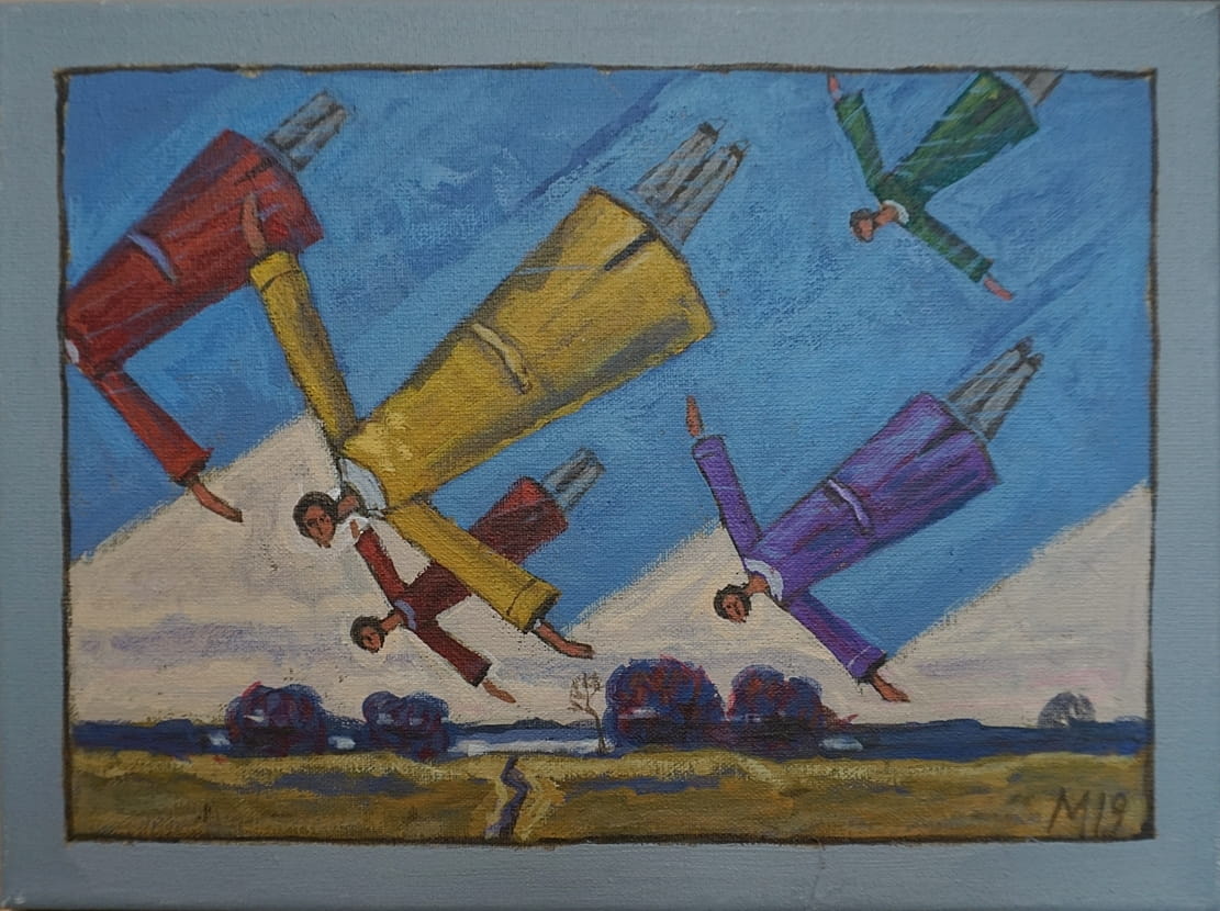 Płotno, akryl, o wymiarach 18 x 24 cm,