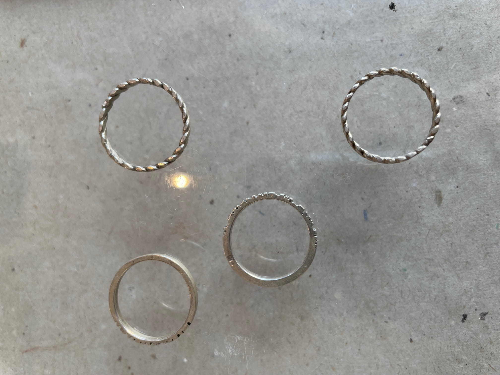 Srebrne obrączki z delikatnymi ornamentami, świetnie komponują się jako dodatek do pierścionków. Same w sobie są subtelnym akcentem.