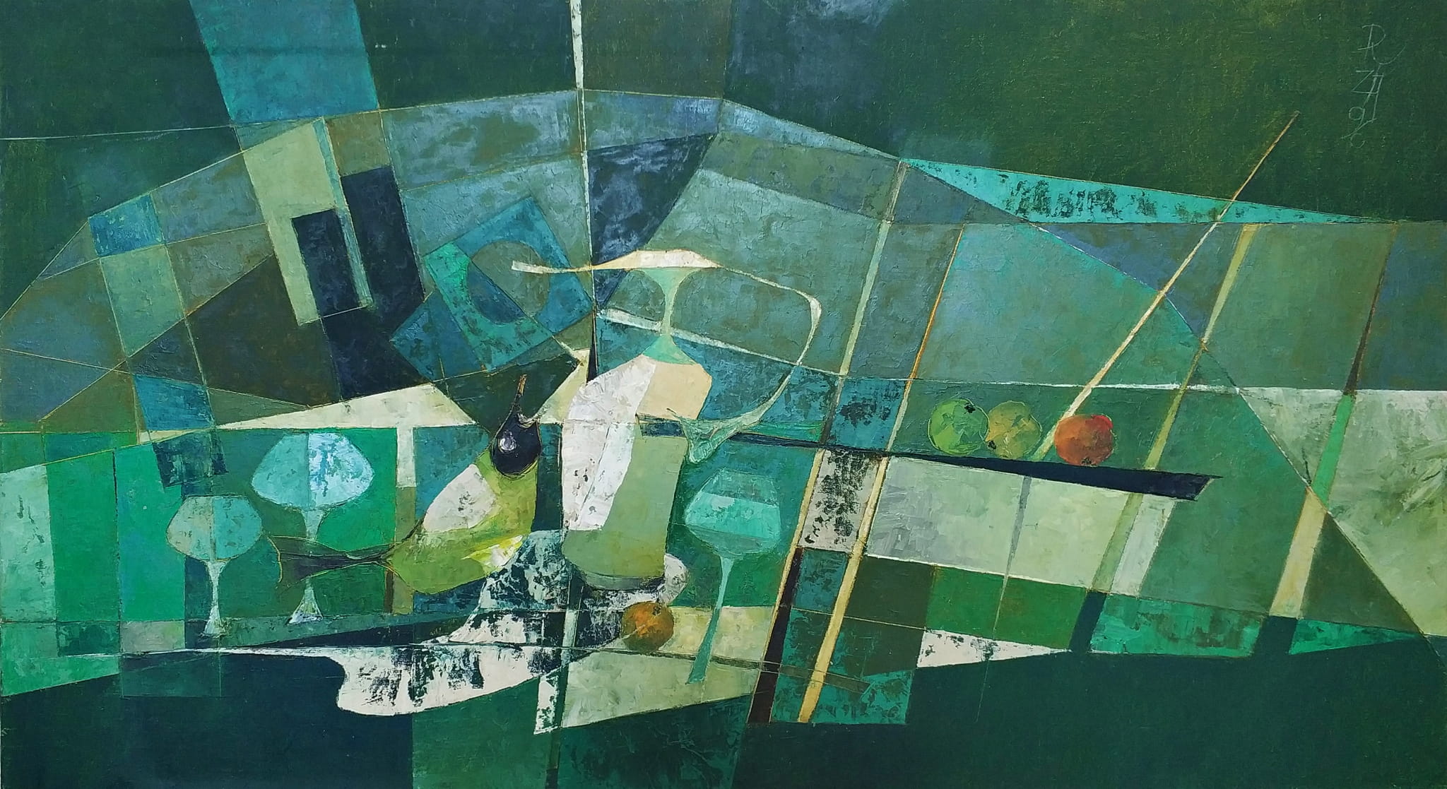 RYSZARD ZAJĄC / OBRAZ / KOMPOZYCJA GEOMETRYCZNA Z BIAŁYM DZBANEM